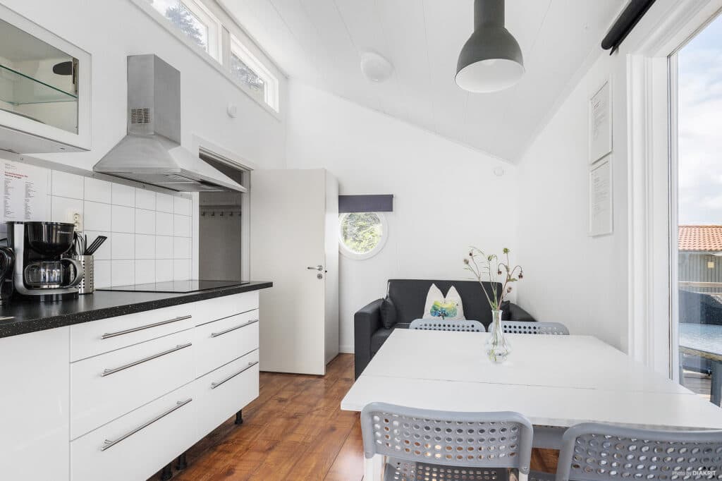 Trevlig och ljus stuga på 25 kvm, med totalt fyra bäddar. Bäddarna är fördelade med två sängar i ett sovrum och en bäddsoffa i allrummet med plats för två personer. I stugan lagar du enkelt din egen middag i köket som är utrustat med både spis, mikro, kyl och kaffebryggare. Avnjut måltiderna vid köksbordet eller på stugans altan med en härlig utsikt. I stugan finns även badrum med dusch och toalett. När du bor i en Skagerackstuga så har du dessutom nära till en lekplats. Perfekt för barnfamiljen som vill ha närhet till bus och lek.
