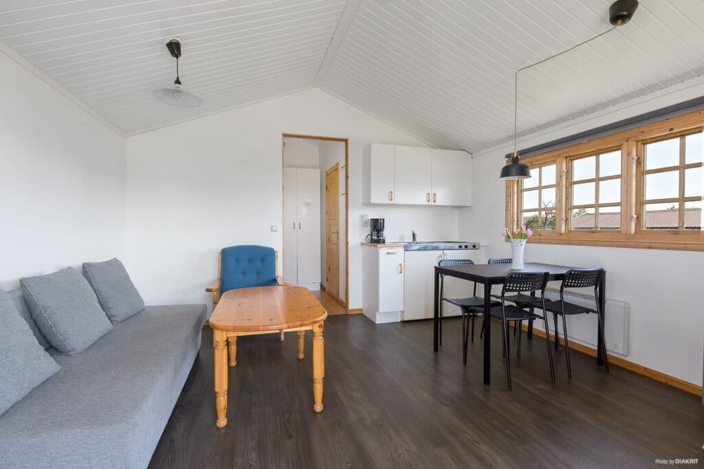 Här är en av våra större stugor på destinationen. Norastuga Plus är en mysig stuga som med sina 26 kvadratmeter rymmer fyra bäddar fördelade på två rum. Bäddarna är fördelade i en våningssäng och en bäddsoffa som rymmer två personer. Norastuga Plus är utrustade med privat badrum med dusch och toalett. Här finns även kök med spis, kyl och frys samt kaffebryggare. Utanför dörren finns en trevlig altan där du kan njuta av morgonkaffet eller goda måltider tillsammans med nära och kära. Njut av ett bra boende nära härliga och rogivande omgivningar.