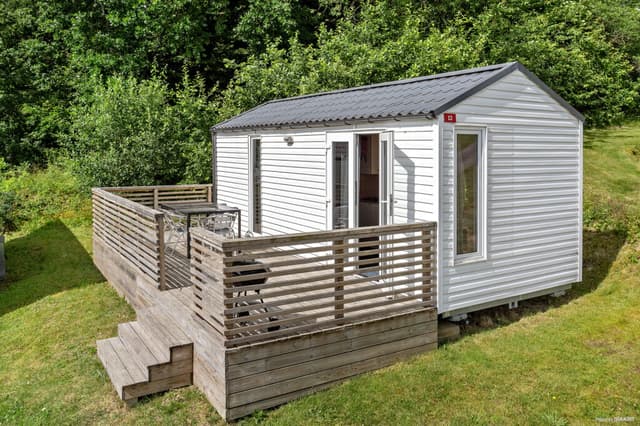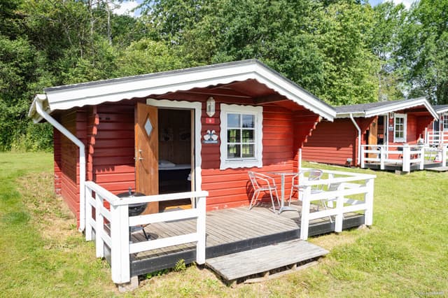 Våra traditionella campingstugor är belägna strax ovanför husvagnscampingen på område 1.