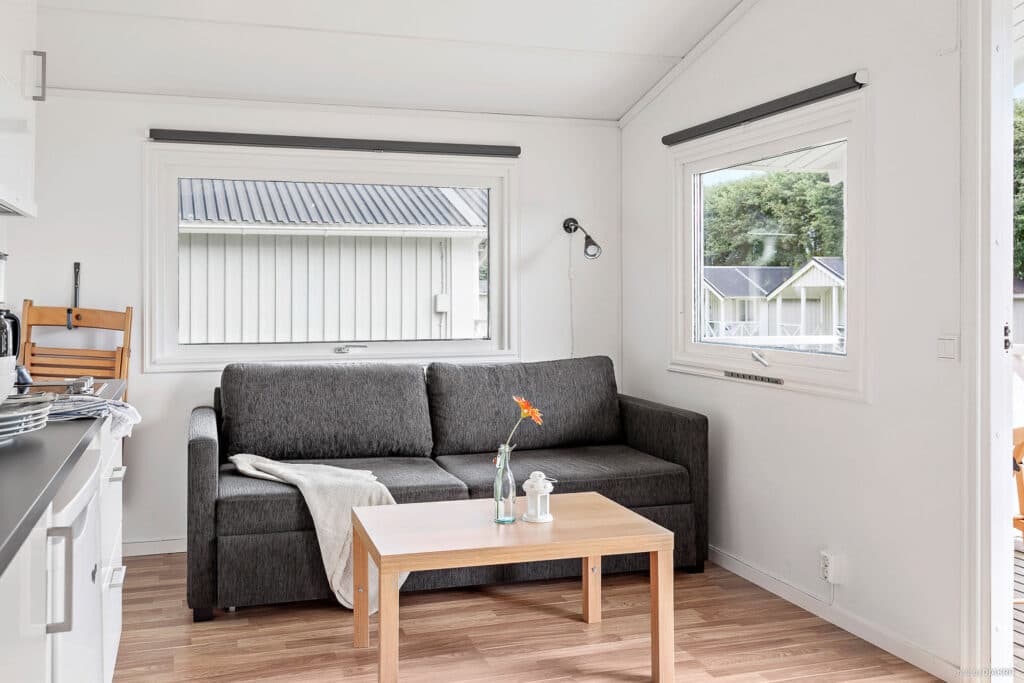 Kliv in i Barsebäckstuga och bo i en välplanerad stuga för det mindre sällskapet. Med lekplats, bistro och butik som närmsta granne har Barsebäckstuga alla campingens bekvämligheter runt hörnet. Stugan är 18 kvm och har plats för totalt fyra personer. Inne i stugan möts du av ett ljust allrum kombinerat med kök och matplats. Här finns bäddsoffa för två personer och en tv, köket är modernt utrustat med kyl, spis och mikro. I stugans sovrum finns en våningssäng och täcken och kuddar finns till stugans alla bäddar. Badrummet har dusch och toalett. Altanen är belägen under tak och de trevliga utemöblerna är en perfekt plats för morgonkaffet eller eftermiddagsfikat. Observera att lakan, handduk och avresestädning ej ingår när du bokar. Önskar du att lägga till det gör du det enkelt i samband med din bokning. Läs mer om hur avresestädning fungerar här.