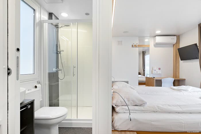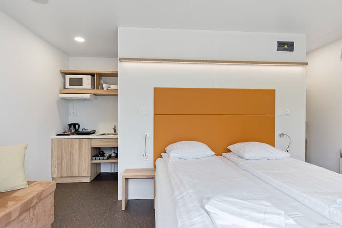 Bäddarna består av en dubbelsäng samt en bäddsoffa.