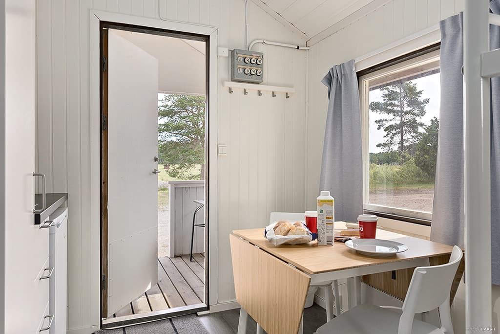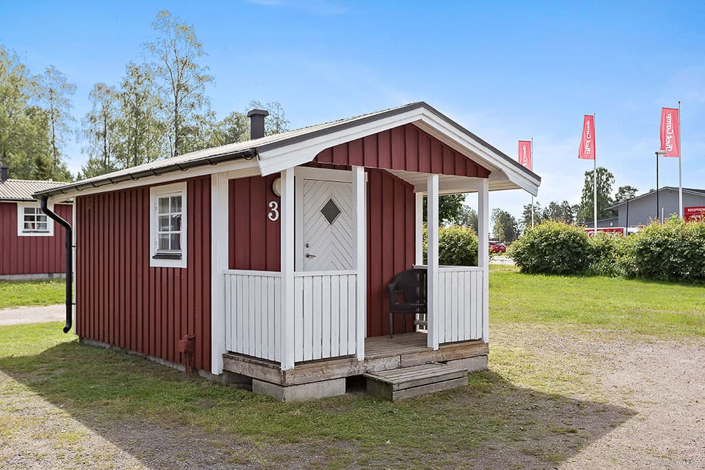 Boendet för er som inte bor på camping för att sitta inne hela dagarna! Stugorna är enkla och mysiga, 12 kvm stora och rymmer fyra personer – här sover ni gott om natten i våningssängarna. Täcken och kuddar finns till stugans alla bäddar. På dagarna ger ni er antagligen ut på roliga upplevelser i staden eller i den fina naturen, stugorna har även nära till lekplats. Det finns ett enkelt litet pentry med spisplatta och kylskåp med frysfack. För en dusch eller toalettbesök går ni bara till den närliggande servicebyggnaden. Parkering finns intill stugan.