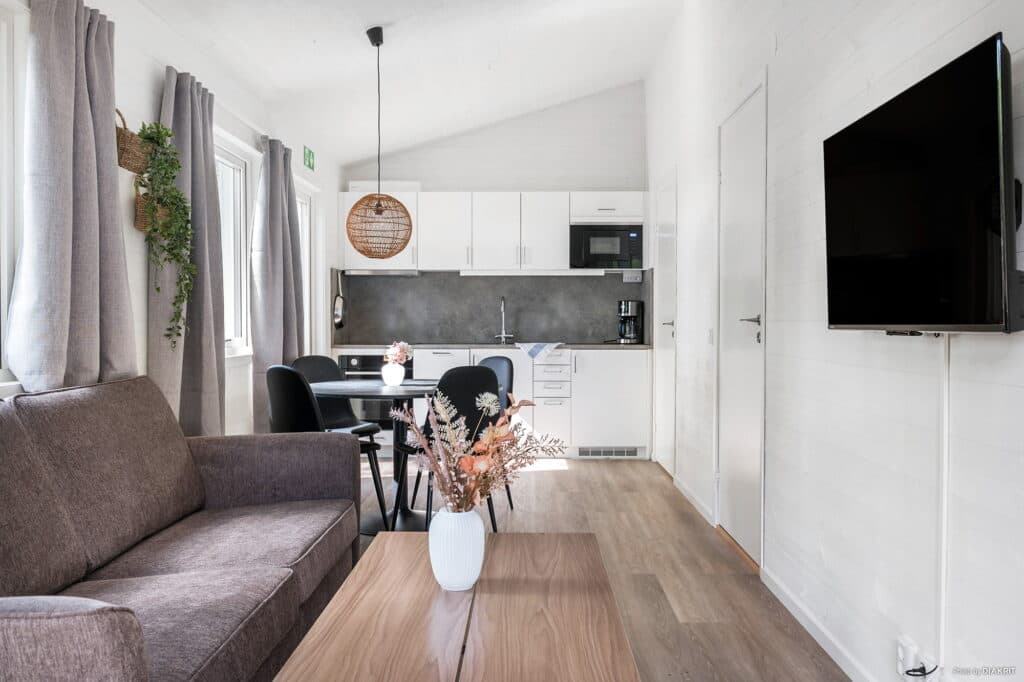 Varmt välkommen till Tallstuga – en helt nybyggd stuga på Åhus! Stugan är en av de största på destinationen och är utrustad med de flesta faciliteter du kan tänkas behöva för en bekväm och skön semester. Här bor du på 45 kvm, i en fräsch miljö med plats för upp till 4 personer. Bäddarna är fördelade i två sovrum med en dubbelsäng i ena och två separata sängar i den andra. I stugans allrum finns ett utrustat kök med porslin, ugn, spis, mikro, kyl, frys, diskmaskin och kaffebryggare. I allrummet finns även en soffa och TV för mysiga stunder. Utanför stugan finns en altan där du kan njuta av morgonkaffet eller en god middag. Du hittar även dusch, toa, tvättmaskin och torktumlare i stugan.