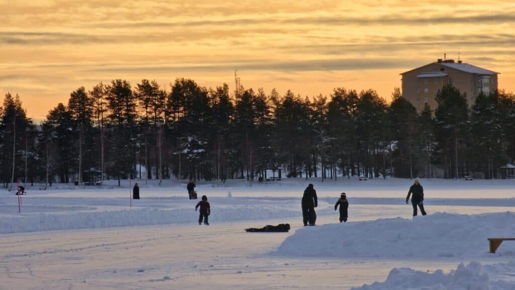 Precis nedanför First Camp Ansia på älven finns en arena för vinteraktiviteter.