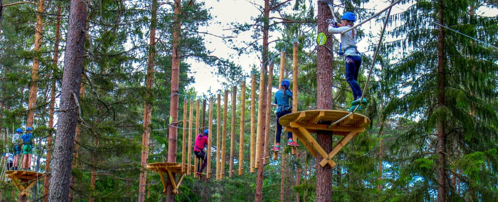 I klätterparken Høyt og Lavt kan hela familjen ta del av spännande utmaningar och naturupplevelser i en trygg miljö – för alla åldrar och erfarenhetsnivåer. Innan du ger dig ut i banorna får du en säkerhetsgenomgång. Här hittar du även priser på klätterbiljetter och kan kontrollera tillgänglighet. Biljetter kan också köpas i receptionen på First Camp Bø – Telemark.