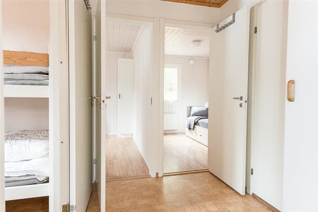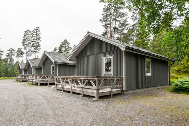Vänernstuga Plus är 44 kvm stor och har plats för totalt åtta personer. Stugan har tre sovrum, ett med en dubbelsäng, ett med två våningssängar och ett sovrum med en två enkelsängar. Täcken och kuddar finns till stugans alla bäddar. Köket är utrustat med husgeråd, spis/ugn och kaffebryggare. köksbord, åtta stolar, soffa och TV. Badrum med dusch och toalett. Terrass med bord och stolar för åtta personer. Vänernstuga Plus nummer 15 har ingen frys utan har ett mindre frysfack.