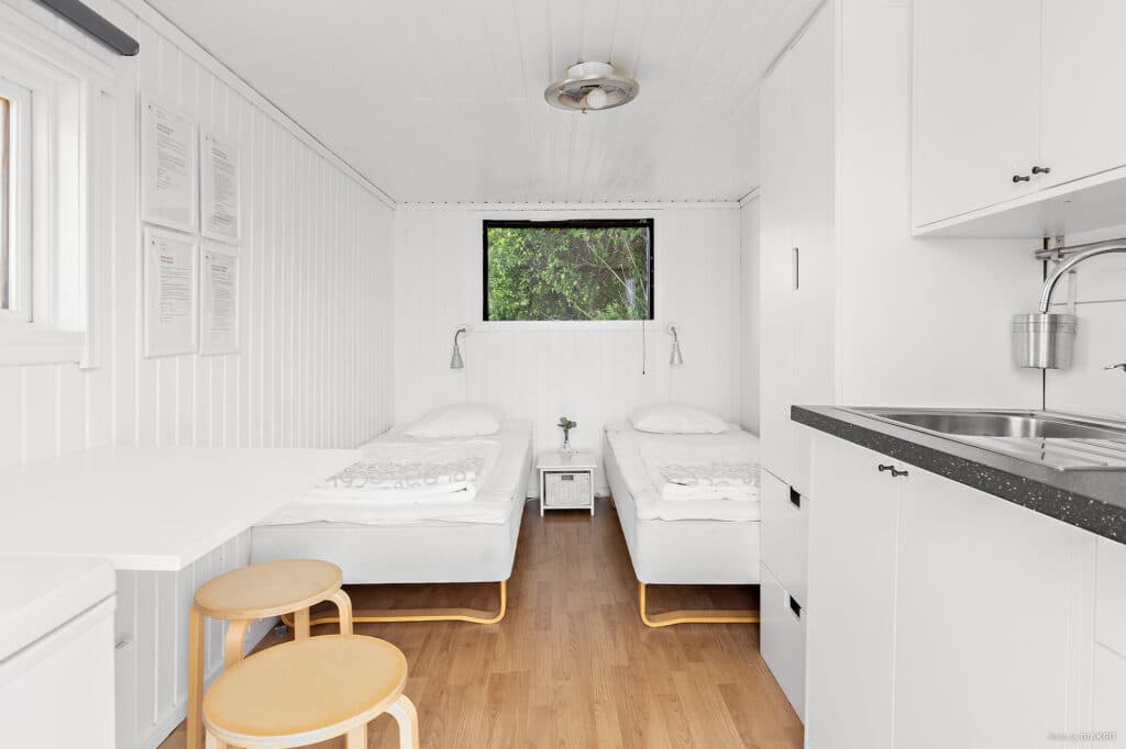 Badhytten är en campingstuga med 2 bäddar, belägen nära havet med havsutsikt. Enklare pentry med kokplatta, kyl, kaffebryggare & porslin finns. Dusch och toalett samt kök finns i servicehus. I den här stugan är husdjur välkomna, till en kostnad. Lägg till avgiften i onlinebokningen om ni har husdjur med er.