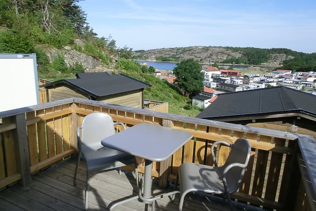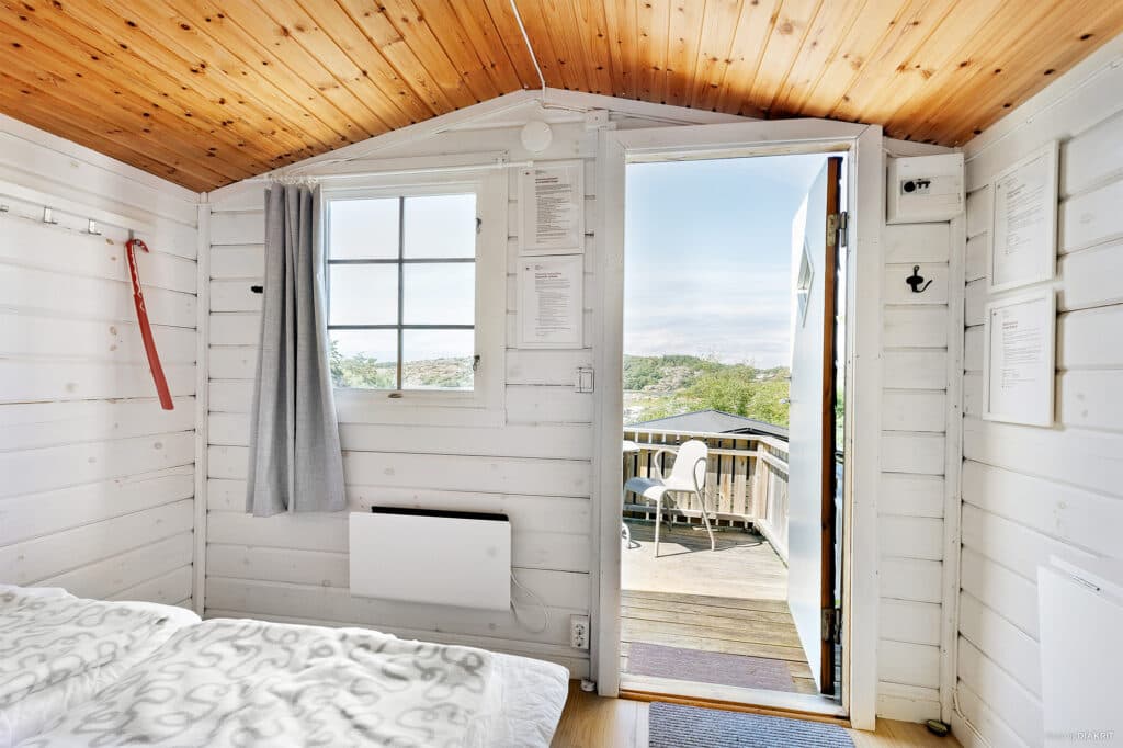 Stugan har även en liten altan med ett bord och två stolar. Perfekt för dig som vill njuta av morgonkaffet med en magisk utsikt över kusten. Hit kan du även ta med ditt husdjur på resan. Observera att stugorna är belägna i en brant backe.