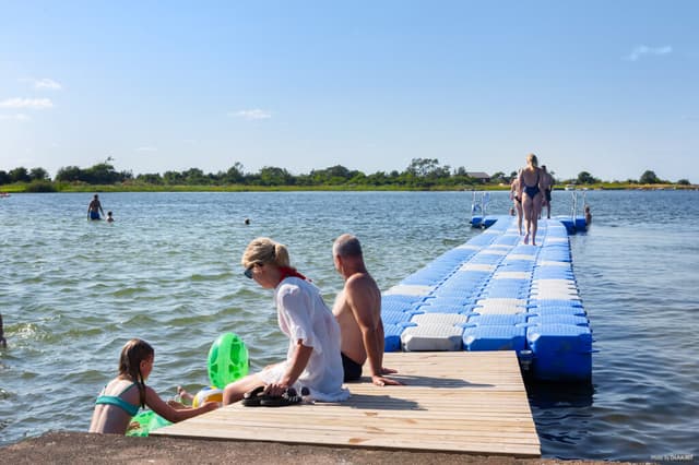 Prova vår roliga hoppkudde som finns på lekplatsen nere vid stranden. Mycket populär bland både små och stora barn, samtidigt som du som förälder kan njuta av de vackra och öppna vyerna.