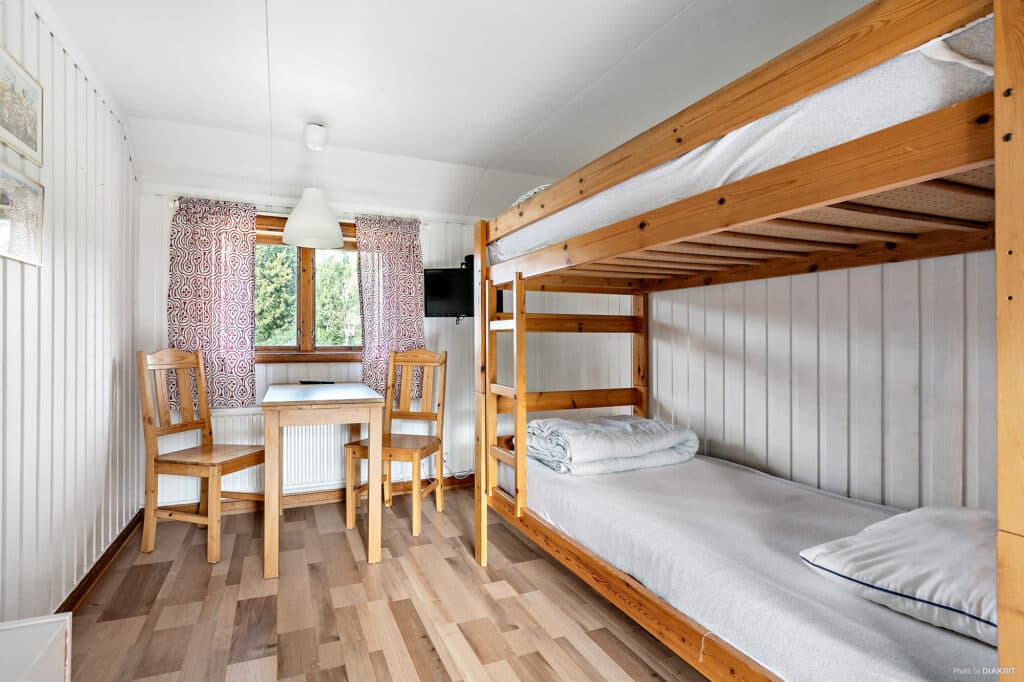 Vandrarhem Loftet för två personer är 8 kvm. Nummer 35 B-C är nedervåningen och nummer 35 E-F är övervåningen. I rummet finns en våningssäng, tv, pentry med kokplatta, mikro och kaffebryggare. Rinnande vatten för disk, toalett och dusch finns inte i rummet, utan i byggnaden som du delar med andra gäster. Ta med eget rengöringsmedel till städningen.