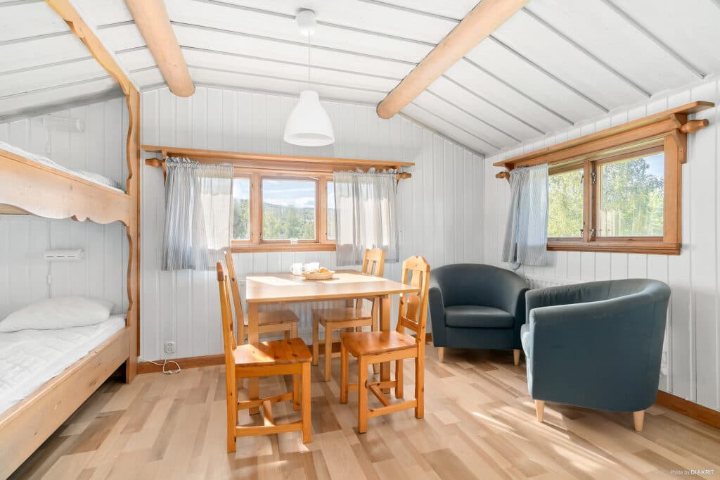 Backastuga är 24 kvm och har ett separat sovrum med en våningssäng samt ett gemensamt allrum och kök. I allrummet finns en soffa, öppen spis och tv samt en våningssäng. Täcke och kuddar finns till stugans alla bäddar. Köksavdelning med spis, ugn, mikro, fläkt, kyl, frys och kaffebryggare. Det finns en toalett men ingen dusch i stugan, det kan nyttjas i servicehusen på campingen. Motorvärmaruttag finns till stugan.