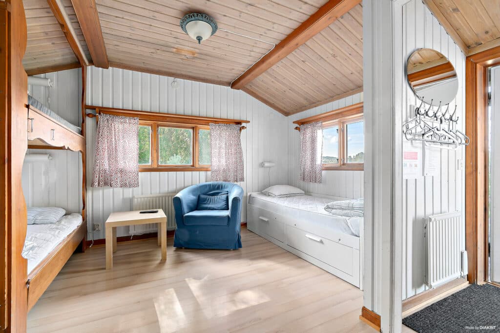 Bodastuga är 21 kvm stor och har plats för totalt tre personer. Stugan har öppen planlösning med en våningssäng och en dagbädd. Täcke och kuddar finns till stugans alla bäddar. I stugan finns en öppen spis, tv och matplats. Enklare köksavdelning med spis, ugn, mikro, fläkt, kyl, frys och kaffebryggare. Badrum med dusch och toalett. Uteplats med utsikt över campingområdet. Motorvärmaruttag finns till stugan.