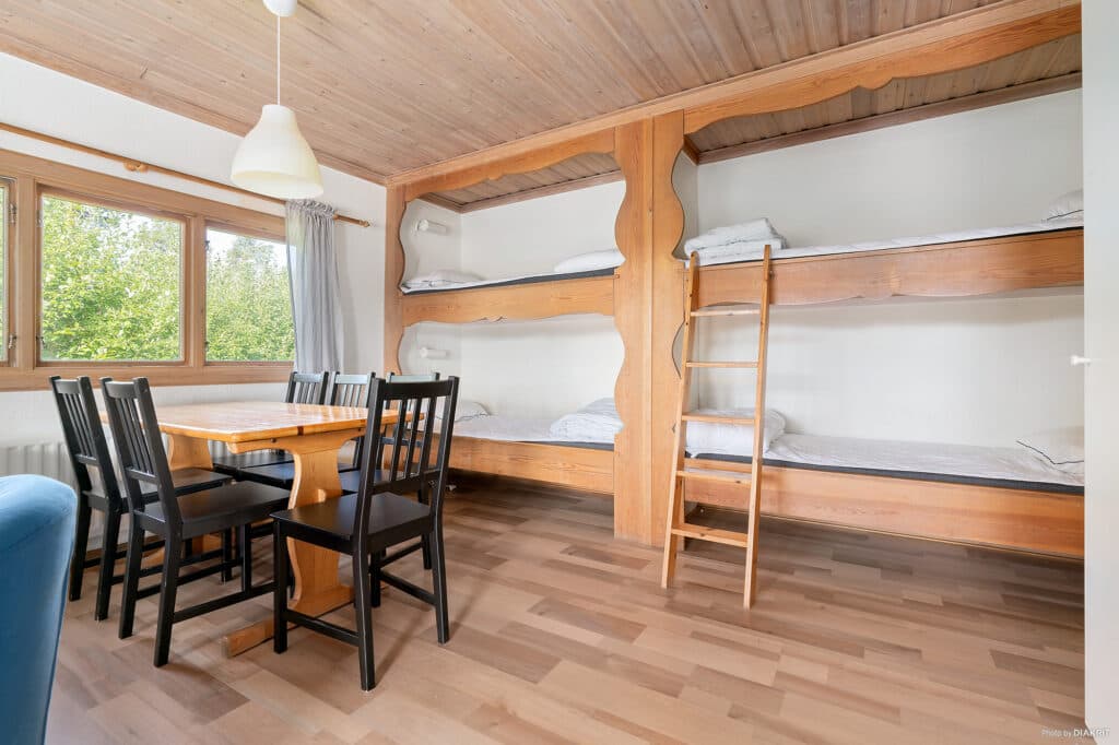 Bäddarna består av tre våningssängar samt en våningssäng i lillstugan.