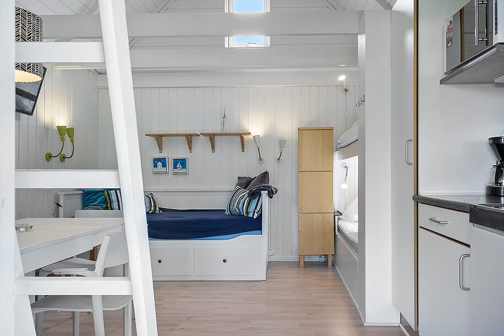 Härlig välutrustad stuga med ett loft med plats för 2 personer samt ett mysigt vardagsrum med soffplats. Men ett vardagsrum som även fungerar som sovrum, plats för 2 personer, matplats, fin köksnisch med spis, mikro, kyl m/frys, kaffebryggare, allt i tjänst, varmt & kallt vatten. Stugorna är rökfria. Du hittar trädgårdsmöbler och en grill på den härliga terrassen. Lätta täcken och kuddar finns i kabinen. Hyttpriser är inkl. el, värme och vatten. Supermysiga stugor som är möblerade för 4 personer. Det finns inget bad eller toalett i stugan, här används närmaste servicebyggnad.