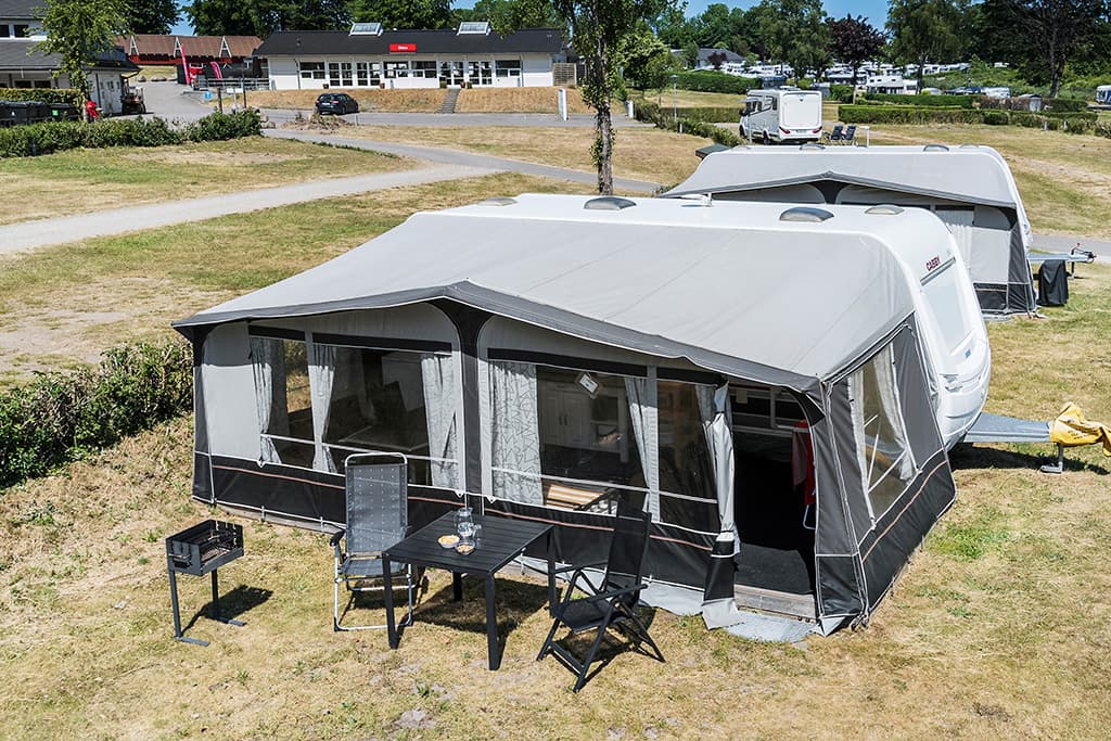 Prova en av våra hyresvagnar. Vagnarna är utrustade med fullt utrustade förtält som innehåller allt du behöver för en fantastisk semester. Vagnarna är placerade nära servicebyggnad 1, Bistro, pool samt lekplats. Hyrbilen är lämplig för 2 vuxna och 3 barn + en säng i förtältet.