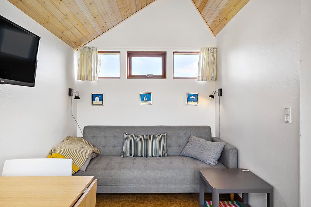 Stugorna är designade för 5 personer (4 normala bäddar + 1 extrasäng i vardagsrummet) och är rökfria. Stugorna är 25 m² med egen toalett och bad, separat sovrum och loft med utsikt mot stjärnorna. Stugorna har ett trevligt, rymligt vardagsrum, stort kök. Allt porslin, varmt och kallt vatten, 4 kokplattor, ugn, kyl m/frys, diskmaskin, kaffebryggare och TV. Trädgårdsmöbler och grill finns på den härliga altanen med bra skyddade förhållanden. Lätta täcken och kuddar finns i kabinen. Kollundsstugorna har renoverats 2020 med bl.a. nytt större kök. Hyttpriser är inkl. el, värme och vatten. Uthyres året runt!