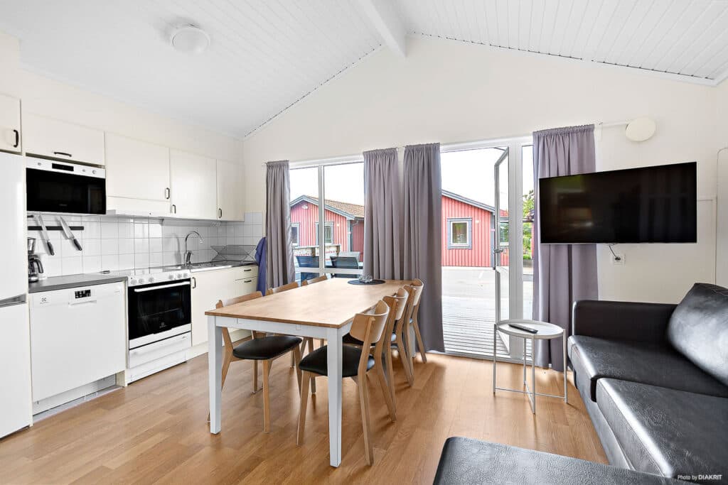 Per Brahes Stuga är våra 6-bäddsstugor på 34 kvm. Stugorna har badrum med dusch och toalett. Varje stuga innehåller ett vardagsrum med tv, en möblerad altan och uteplats. Stugorna har två sovrum varav det ena med två våningssängar och det andra med dubbelsäng. Täcke och kudde finns till stugans alla bäddar. Köket är utrustat med porslin och övrig köksutrustning såsom diskmaskin, micro, kaffebryggare, kyl och frys. Parkeringsplats finns vid stugan.