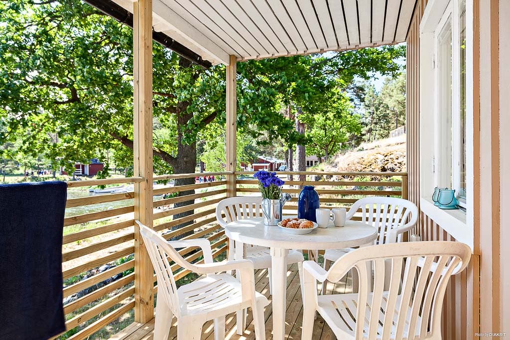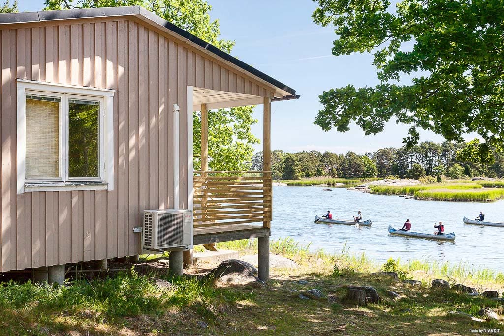 För den lilla familjen kan vi erbjuda Klippstugan som med sina 24 kvm är ett mysigt boende med havsutsikt. Här bor familjen bekvämt med en möblerad altan med tak som vetter ut mot Östersjön och barnen har nära till lekplatsen. En stuga närmre havet än detta är svårt att hitta. Inne i stugan finns ett allrum med bäddsoffa, TV och en avskild matplats för fyra personer. Det finns en våningssäng i sovrummet och täcken och kuddar finns till stugans alla bäddar. Köket är inrett med kyl, frys, spis, ugn och mikro. Vatten är framdraget till stugan via kran på utsidan. Tillgång till toalett och dusch finns i servicehus på området.