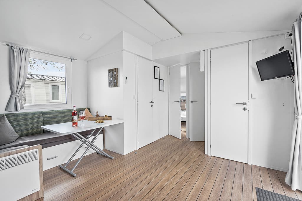 Välkommen till Enebærodde-stugan! Full komfort samtidigt som du får hela campingupplevelsen. Stugan är en villavagn och är rymlig med plats för sällskap på upp till 8 personer. I stugan finns sovplatser för 8 personer fördelade enligt följande: ett sovrum med en 110-säng, ett sovrum med två enkelsängar, en bäddsoffa i vardagsrummet och det tredje sovrummet har två enkelsängar samt en våningssäng. Stugan har även kök, vardagsrum, badrum, 2 toaletter och en stor terrass.