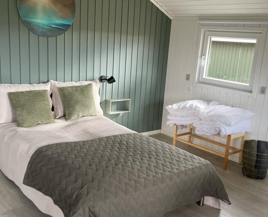 Välkommen till en charmig stuga med en bekväm 140 cm säng och en praktisk bäddsoffa med plats för upp till två personer – perfekt för två vuxna och två barn. Här bor ni hemtrevligt med ett kök och allrum i ett, utrustat med allt ni behöver: kyl, spis, matbord och TV. I stugan finns täcken och kuddar för hela sällskapet. Ta med egna sängkläder eller boka enkelt på plats. Njut av morgonkaffet eller kvällssolen på den lilla terrassen, med härlig utsikt mot söder. Stugorna ligger dessutom nära servicehuset, där ni hittar toalett och dusch.