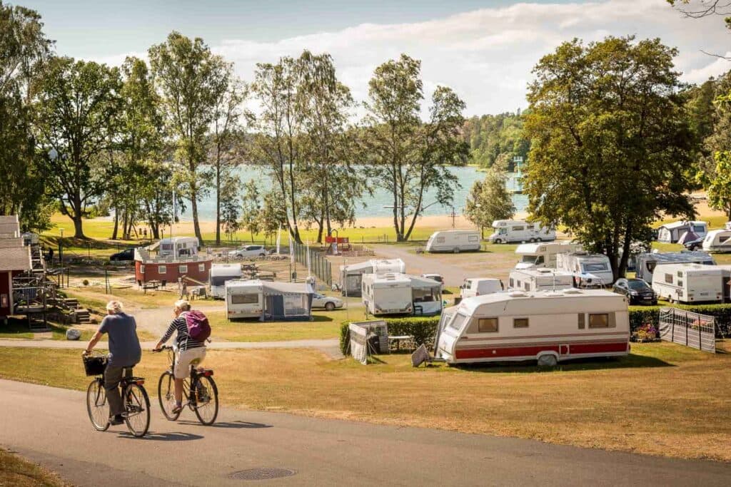 Nynäshamn, en knapp timme söder om Stockholm, når ni enkelt med såväl bil som tåg. Väl framme möts ni av härliga grönytor och en rad olika boendealternativ att välja mellan – fina campingtomter för husvagn, husbil och tält, mysiga campingstugor och självhushållsstugor eller vandrarhem. Campingen är utrustad med toaletter, duschar, skötrum, tvättmaskin, torktumlare, ugn, mikrovågsugn och diskmaskin. Här finns också servicebutik, kiosk, café och en restaurang där ni kan äta och dricka gott. Ni är varmt välkomna att ta med hunden på semestern. Här finns fina promenadvägar, ytor för spring och lek samt hunddusch.