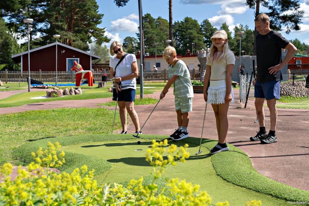 Vår spännande äventyrsgolf brukar vara ett vanligt inslag för våra gäster under deras vistelse hos oss. Avgör en gång för alla vem som är mästaren inom familjen. Ni ställs inför utmanande hinder som en majstång, dalahäst, björngrottor, piratskepp, vasaloppsmålet och en stor borg.