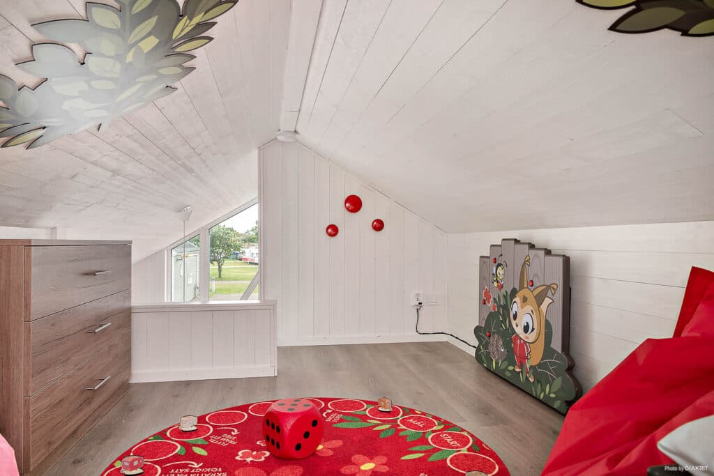 Välkommen till våra Yessi Lodge. Här bor ni skönt och bekvämt med allt som behövs för både stora och små. Lyckodjuret Yessi bor i skogen intill campingen men har stannat till en natt på Lodgerna och lämnat spår efter sig i alla rum. Uppe på det mysiga sovloftet kan barnen utforska en del av Yessis värld med lek och spännande små överraskningar. Här bor ni på rymliga 40 kvm med fyra ordinarie bäddar. Två enkelsängar i sovrum på bottenvåning och två enkelsängar på sovloftet, det finns även möjlighet till två extra bäddar i bäddsoffan. Köket är fullt utrustat med spis, mikro, kyl, frys, diskmaskin och kaffebryggare. I badrummet finns dusch, toalett och tvättmaskin. För extra bekvämlighet är Lodgerna utrustade med AC, utmärkt under varma sommardagar. Varje Lodge har även tillgång till egen uteplats med utemöbler samt parkeringsplats för två bilar intill boendet.