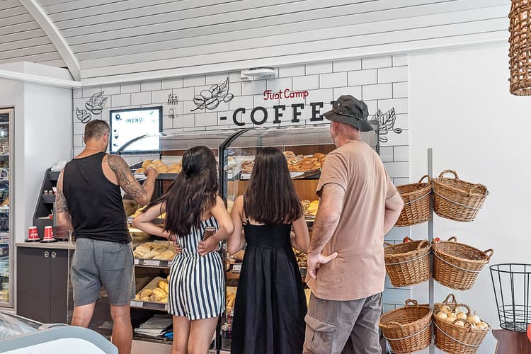 I vår butik finner du allt du behöver för att campinglyckas! Till doften av nybakat bröd hittar du leksaker, grilltillbehör, picknickattiraljer, de nödvändiga basvarorna och färska grönsakerna såväl som godis och snacks för lyckade semesterkvällar.