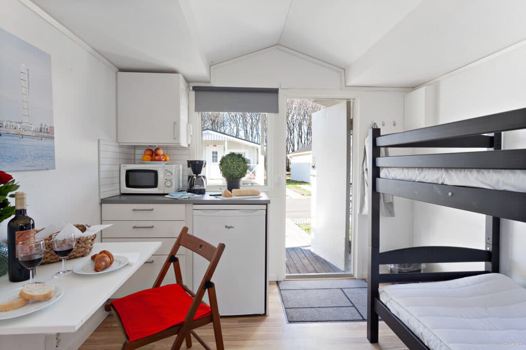 Visst finns det en tilltalande charm med att bo sådär avslappnat spartanskt? När du hellre tar ett uppfriskande dopp i havet istället för den vanliga, lite tråkiga, morgonduschen så är detta boendet för dig! Badhytt är en stuga på 10 kvm för två personer. Dusch, toalett och gemensamt kök finns i närliggande servicebyggnad. I stugan finns två bäddar i en våningssäng och kylskåp och mikro. Täcken och kuddar finns till stugans bäddar. Här finns även en liten trevlig altan där du kan njuta av en kopp kaffe på morgonen. Observera att lakan, handduk och avresestädning ej ingår när du bokar. Önskar du att lägga till det gör du det enkelt i samband med din bokning. Läs mer om hur avresestädning fungerar här.