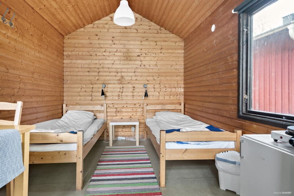 Möckelntorp är vår enda stuga med plats för bara två personer i två enkelsängar. Stugan ligger precis vid vattnet och du vaknar upp med en underbar utsikt över en vik i sjön. Stugan har en liten matplats, vatten saknas dock i stugan men kan hämtas från närområde.