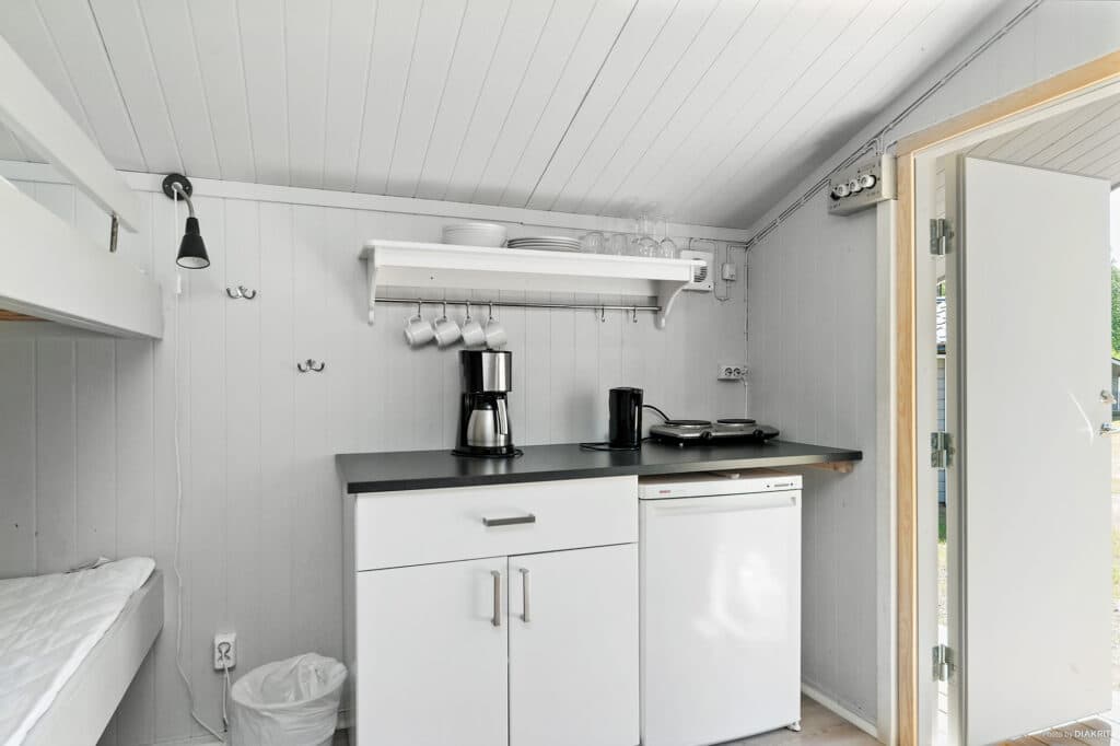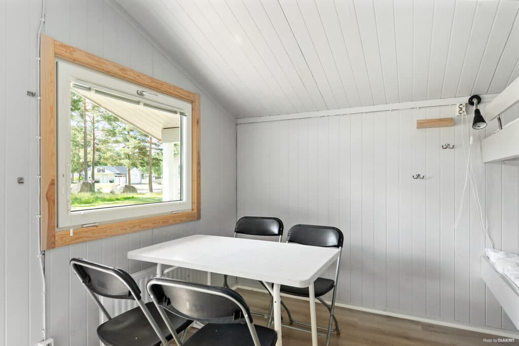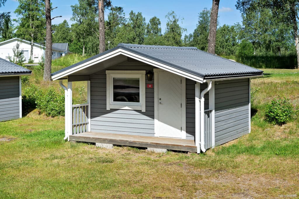 Dessa stugor har ett mer centralt läge på campingen nära både reception och sommarlandet entré. Det är en mindre stuga på 12 kvm med fyra bäddar fördelat på två våningssängar på 80 cm. Till varje säng finns madrass, täcke och kudde. Stugan är inredd med matbord och stolar. Köket har kylskåp, två kokplattor, två kokkärl samt de viktigaste köksredskapen och servis för fyra personer. Om ni önskar en stekpanna är ni varmt välkomna att låna i receptionen. I stugan finns inget rinnande vatten, däremot vattendunk och diskbalja. Dusch, toalett och större kök finns i gemensamma servicehus på området. I denna stuga är det tillåtet att ta med sin fyrbenta familjemedlem.