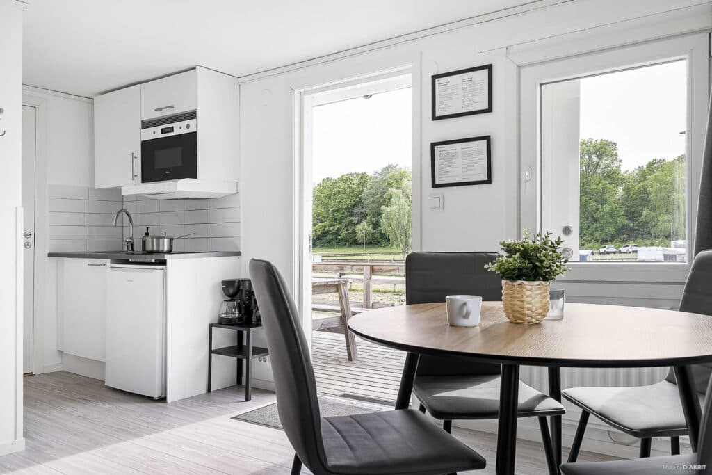Fräscha stugor med hög standard för upp till tre personer. Aspöstugorna är utrustade med dusch, toalett, kök, sovrum, allrum med tv, bäddsoffa samt köksbord. Köket är utrustat med trinett, kyl, två spisplattor samt porslin och köksutrustning.