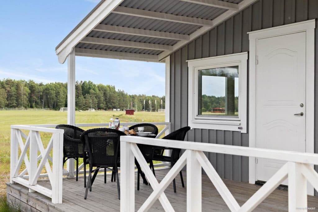 Våra Klarälvstugor är mysiga 4-bäddsstugor på 20 kvm med en härlig möblerad uteplats. I stugorna finns ett separat sovrum med en våningssäng, ett kombinerat pentrykök/allrum med bäddsoffa och badrum med dusch och toalett. Täcken och kuddar finns till alla bäddar. I pentryköket finns kylskåp, frysfack, mikro och kokplattor. Parkering finns intill stugan.