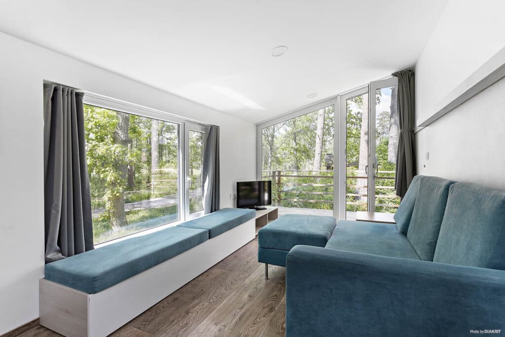 Stensöstugorna är fördelade över 45 härliga kvadratmeter med delvis utsikt över vattnet. I stugan får upp till sex personer plats att njuta av semestern. Bäddarna är fördelade i två sovrum varav ett rum med två enkelsängar och ett rum med våningssäng. I allrummet finns även en bäddsoffa där en till två personer kan få sig en god natts sömn. I stugan finns även värmegolv, AC, ett fullt utrustat kök med allt du behöver för att laga en god middag och stora panoramafönster. Välkommen att njuta av semestern i Stensöstugan!